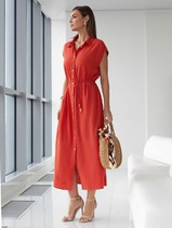14.04 Vilatte Длинное платье-рубашка с поясом и разрезами изо льна с вискозой D2