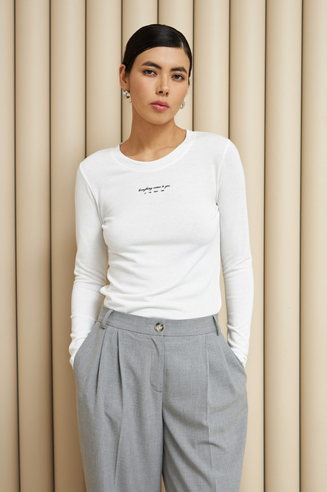 Джемпер прилегающего силуэта из эластичного полотна. Втачной длинный рукав. Круглый вырез горловины оформлен бейкой. Джемпер – это хорошая базовая вещь, подходящая для любого гардероба.