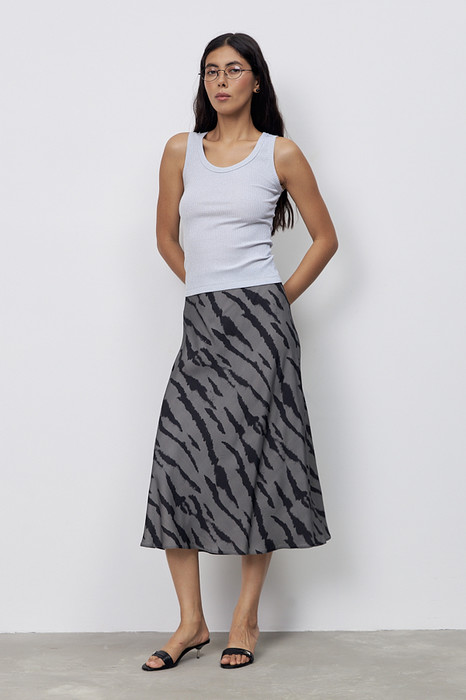 Юбка, расширенная книзу из вискозной ткани. Крой юбки по косой, на линии талии скрытая резинка.