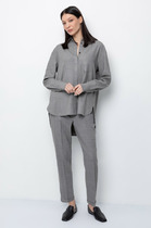 Брюки прямого силуэта из вискозной ткани с крэш-эффектом. Пояс с эластичной резиной и кулиской, в боковых швах карманы.