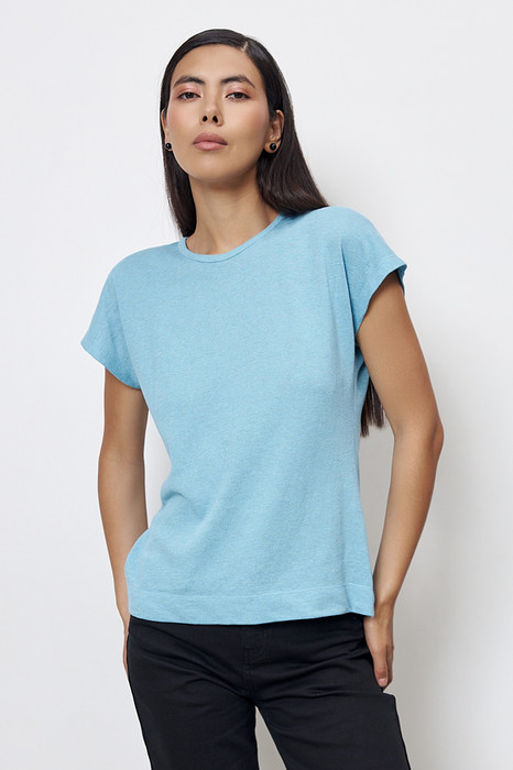 Джемпер из хлопкового эластичного полотна. Изделие полуприлегающего силуэта. Цельнокроеный короткий рукав. Вырез горловины окантован эластичной бейкой. Женский джемпер стал незаменимой и популярной разновидностью одежды, которая может применяться буквально во всех случаях жизни.