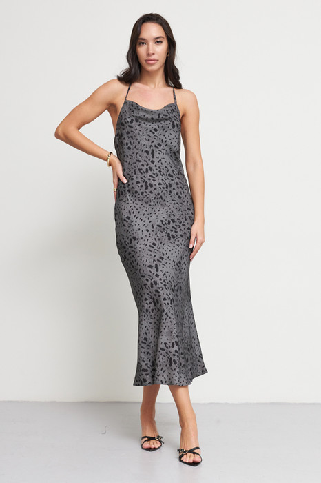 Платье полуприлегающего силуэта, расширенное книзу из вискозной плательной ткани. Изделие на тонких завязывающихся бретелях, с «качелями» в зоне декольте.