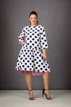 Платье из меланжевого эластичного полотна. Изделие свободного силуэта со спущенной линией плеча и длинным рукавом. Вырез горловины оформлен бейкой из основной ткани. В таблице размеров представлены параметры человека, а не изделия.