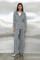 Брюки из костюмной ткани прямого силуэта. На передней половинке изделия выполнены карманы с подкройным бочком, на задней - талиевые вытачки и имитация карманов в рамку. Притачной пояс со шлёвками. Застёжка на молнию-гульфик и пуговицу. Такой крой выгодно подчеркнёт длину ваших ног.