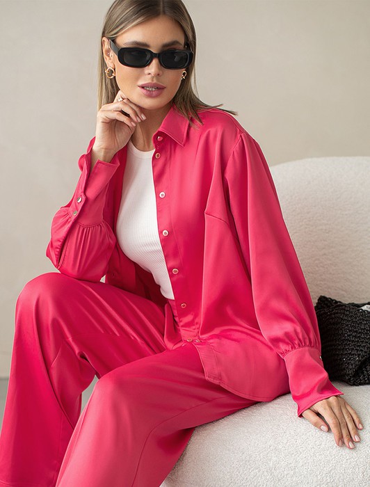 АКЦИЯ Блузка из плотного полуматового сатина с удлиненным манжетом