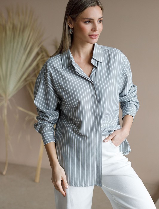 Состав: 55%Вис 45%ПЭБлузка прямого силуэта с кругленным низом как у рубашки выполнена из премиальной вискозы. Лаконичная модель со спущенной линией плеча и застежкой на потайные пуговицы хорошо впишется в деловые образы с классическими брюками. Или в расслабленном аутфите с джинсами и кроссовками. Материал изделия обладает особой прочностью при этом легкий и маломнущийся.