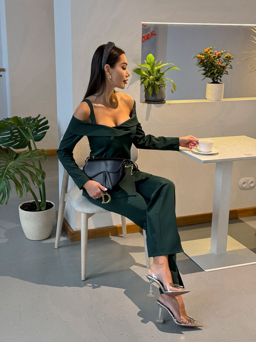 Брюки прямого силуэта. Застёжка -гульфик с молнией. Обработаны карманы в боковых швах. Передние половинки по центру брюк обработаны отделочным швом с разрезом по низу