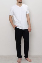 Брюки мужские из трикотажного полотна "кулирка" в клетку, свободного покроя, на притачном поясе с эластичной тесьмой внутри, с карманами в боковых швах. Нижние срезы обработаны подгибкой.