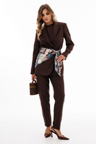 Брюки прямые из струящейся ткани. Верх на поясе со шлевками. По спинке пояс собран на резинку. Застежка по переду на молнию и пуговицу на поясе. В боковых швах карманы.