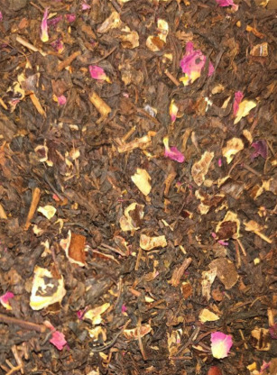 Чёрный чай, лепестки розы, кора рожкового дерева, аромамасла