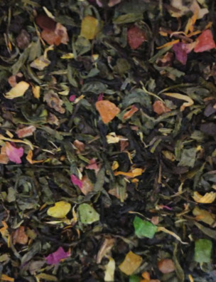 Смесь классических сортов чёрного и зелёного чая, цукаты ассорти, лепестки розы, ароматические масла
