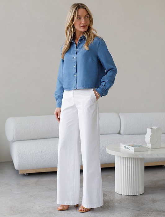 Состав: 100%Хлопок Параметры модели на первом фото: Рост 172, бюст 88, талия 64, бедра 88Широкие прямые брюки выполнены из плотного поплина. Натуральный состав ткани обладает высокой воздухопроницаемостью, а также способностью поглощать и отдавать влагу. Подходит для повседневной носки, гарантируя абсолютный комфорт, особенно в жаркое время года. Классическая модель с карманами впишется в любой гардероб.
