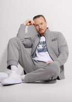 Теплое мужское худи из футера с начесом на капюшоне с регулируемым шнуром, удобным спущенным рукавом и центральным карманом ""кенгуру"". Изделие дополнено имиджевым принтом. Модель составит отличный комплект с брюками.