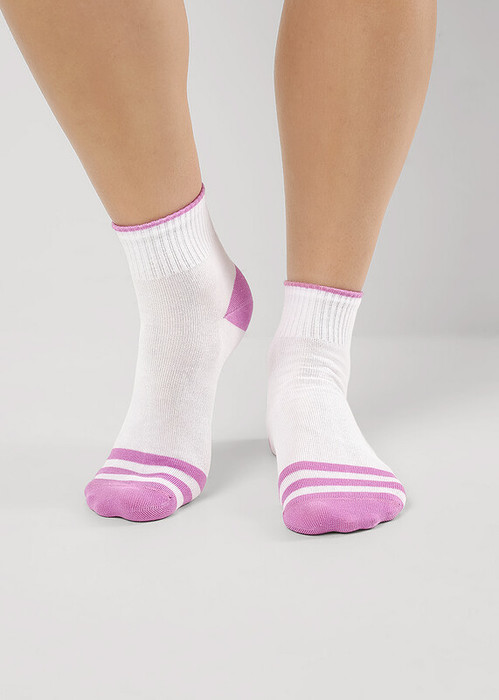 носки женские с выделынми цветом мыском и пяткой, с полосками