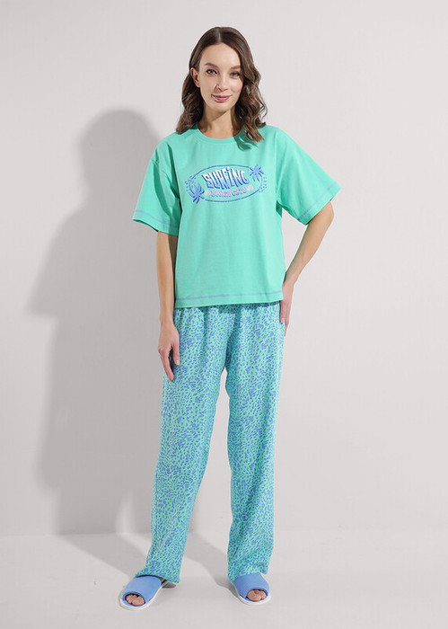 Совместные покупки Тюмень Женская одежда Пижамы, халаты — Акция Clever Пижама женская CLE LP25-1169/4 св.зелёный/голубой