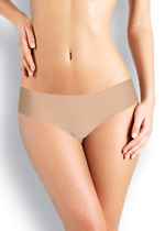 Трусы бикини, изготовлены из однотонного эластичного полиамидного полотна. Края изделия обработаны лазером, благодаря чему нити не распускаются. Модель не заметна под облегающей одеждой, прекрасно держит форму, но при этом отличается эластичностью.