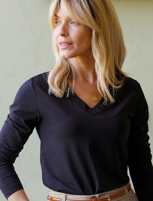 Состав: 92%Хлопок 8%ПУ Параметры модели на первом фото: Рост 172, бюст 88, талия 64, бедра 88Черный джемпер с длинными рукавами и V-образным вырезом сшит из премиального хлопка. Однотонная хлопковая модель хорошо поддерживает комфортный для тела микроклимат. Благодаря вплетению эластановых волокон вещь хорошо сохраняет форму.