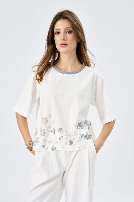 Блуза свободного кроя со складкой на спинке. Рукав втачной, свободный. Горловина круглой формы. Возможно отличие фотографии по оттенку, связанное с разной цветопередачей монитора.