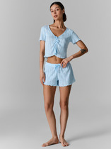 Халат молодежный из трикотажного полотна «вельмонд», прямого силуэта, с длинными втачными рукавами, капюшоном, карманами в боковых швах, и центральной бортовой застежкой на тесьму «молния». В области карманов и в верхней части левой полочки выполнена вышивка – аппликация.