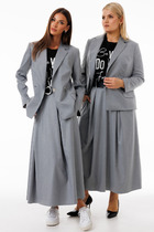 Стильный 2-предметный комплект, состоящий из жакета и юбки-шорт. Комплект выполнен из качественной костюмной ткани.