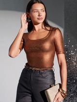 Футболка облегающая из хлопка в рубчик с U вырезом и матовым покрытием металлик