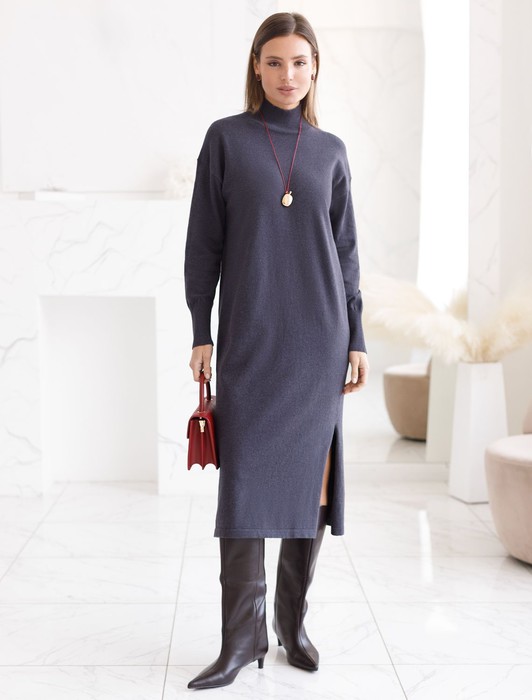 Состав: 82%Хлопок 18%ПА Плотность: 12 GG Параметры модели на первом фото: Рост 172, бюст 88, талия 64, бедра 88 Размер товара на первом фото: 42Платье тонкой вязки выполнено из хлопка. Лаконичная модель с высоким воротом дополнена манжетами и разрезами по бокам. Изделие свободно сидит по фигуре и не сковывает движений. Мягкая пряжа очень приятная к телу не колется и сохраняет тепло при этом не перегревая. Изделие дополнено металлическим логотипом бренда.