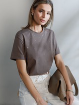 Нарядная футболка с принтом стразами из премиального хлопка с эластаном