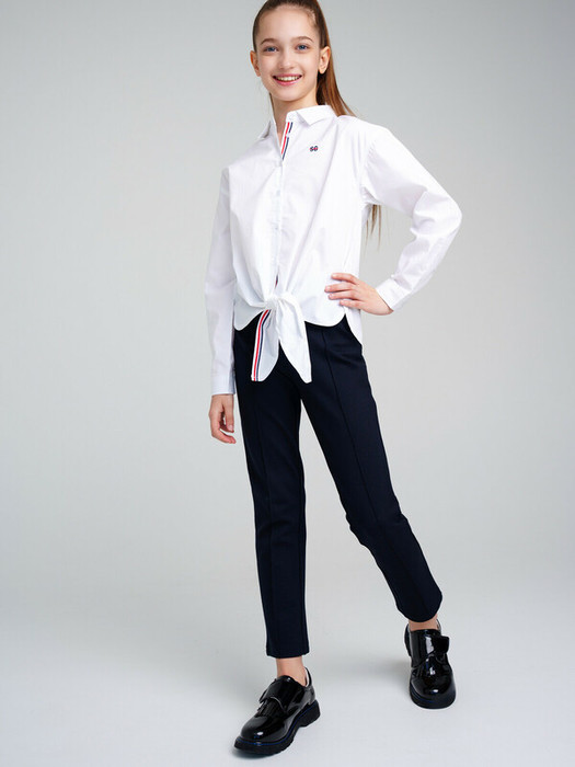 Белая текстильная блузка свободного силуэта для девочки подростка. Школьная блузка на пуговицах хорошо держит форму, комфортна в носке и проста в уходе. Высокое содержание хлопка. Рубашка в школу с длинным рукавом разнообразит повседневные школьные образы.