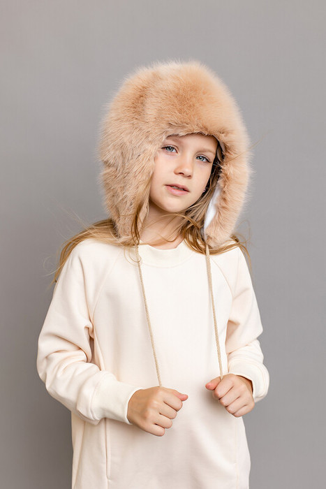 Шапка меховая для девочки бежевая на завязках зимняя от бренда batik. Стильная шапка-ушанка детская с искусственным мехом и подкладом. Меховая шапка теплая, мягкая, не колется, подходит для холодной зимы.Характеристики:Ткань верха: полиэстр 100% Подклад: полиэстр 100%Производитель: batik