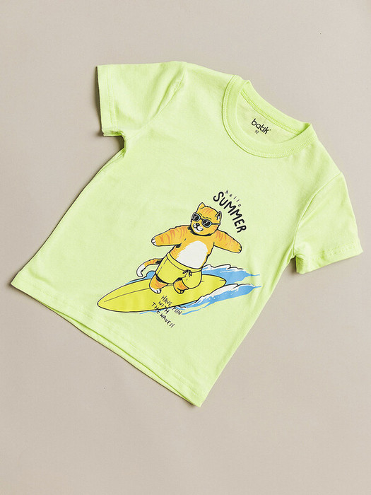 Футболка с коротким рукавом для мальчика в лаймовой расцветке из натурального хлопка. Детская футболка с ярким летним рисунком выполнена из мягкого трикотажа. Лёгкая ткань со 100% хлопковым составом хорошо пропускает воздух и позволяет телу дышать.Характеристики:Материал: 100% хлопокПроизводитель: batik