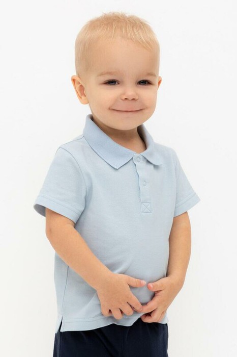Поло для мальчика. Изготовлено из высококачественного трикотажного полотна пике. У изделия вязаный воротник и застежка спереди на две кнопки.