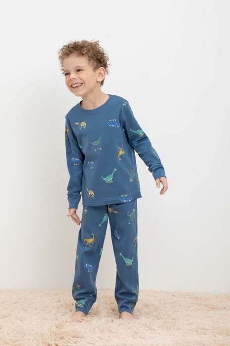 Трикотажная пижама из натурального хлопка. Джемпер с длинными втачными рукавами и брюки с эластичной резинкой в поясе. Мягкие манжеты на рукавах и по низу брюк. Оригинальная набивка выполнена из стойких текстильных гипоаллергенных красителей. Изделие сохраняет цвет и форму после многократных стирок. Все трикотажные полотна производятся в соответствии с нормами швейцарского сертификата ЭкоТекс.