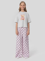 Трикотажная пижама из натурального хлопка. Джемпер с длинными рукавами. У брюк эластичный пояс на резинке, эластичные манжеты. Оригинальная набивка выполнена из стойких, гипоаллергенных текстильных красителей. Пижама сохраняет цвет и форму после многократных стирок. Все трикотажные полотна производятся в соответсвии с нормами Швейцарского сертификата ЭкоТекс.