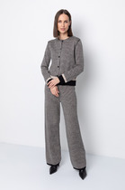 Удобные вязаные брюки прямого силуэта. Связаны жаккардом из мягкой полушерстяной пряжи. В составе 50% шерсти и 50% акрила. Шерсть в составе сохраняет тепло, а благодаря волокнам акрила изделие мягкое и дольше сохраняет форму. Плотная фактура вязания согревает и сохраняет форму во время носки.