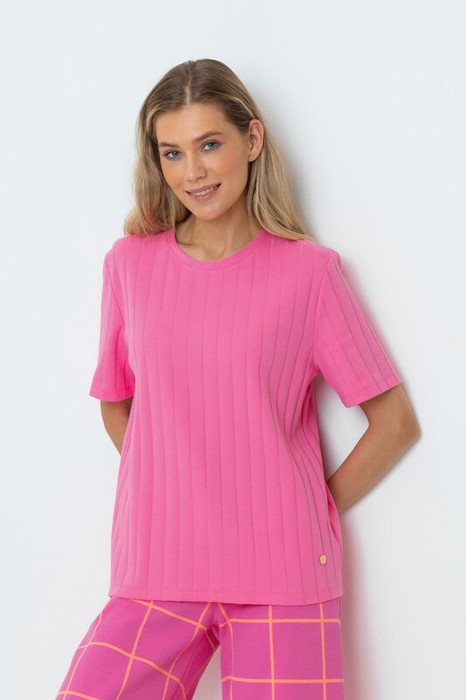 Базовая футболка из плотного гладкого трикотажа интерлок в рубчик.