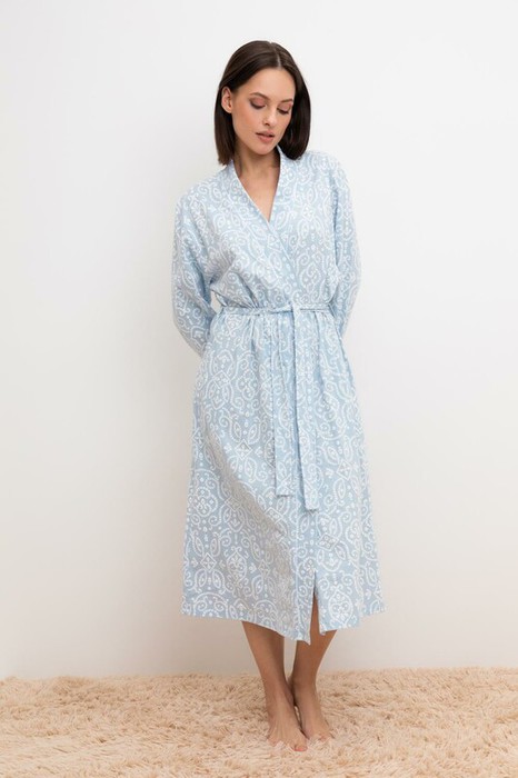 Акция по 23.12 Very Neat халат жен Е 50005/голубой,кружевной узор