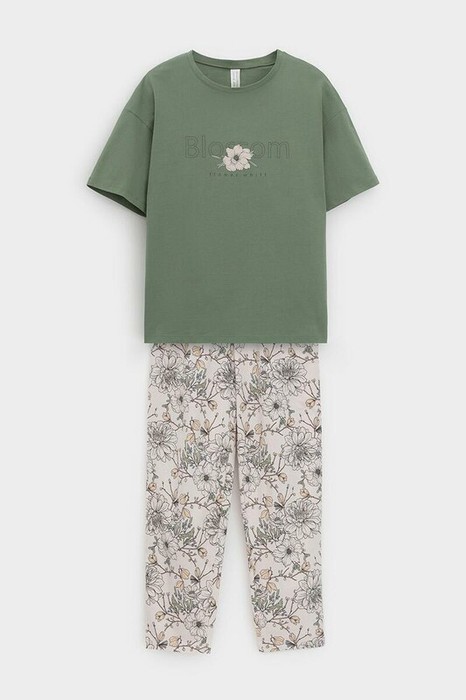 Легкий комплект для комфортного сна и отдыха. Свободная футболка с принтом и спущенной линией плеча комфортно садится по фигуре. Укороченные брюки с удобными боковыми карманами выполнены из набивного трикотажа. Гладкий материал приятен к телу и позволяет коже дышать.