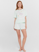 Легкий комплект для комфортного сна и отдыха из натурального хлопка. Футболка с карманом и спущенной линией плеча комфортно садится по фигуре. Брюки с поясом на резинке выполнены из набивного трикотажа. Гладкий материал приятен к телу и позволяет коже дышать.