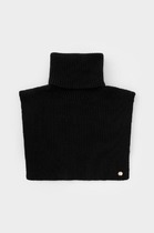 Однотонный вязаный шарф. Связан резинкой. Украшен металлическим значком с тиснёнными буквами VN и фирменной этикеткой.