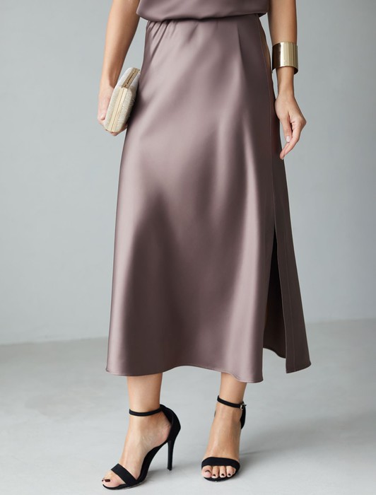 Состав: 97%ПЭ 3%ПУ Плотность: 190 Г/м2Юбка миди кофейного цвета с разрезом из струящегося плотного сатина — находка для модниц, ценящих элегантную классику и современный стиль. Модный крой длинной юбки подчеркивает фигуру, а мягкий эластичный пояс обеспечивает дополнительный комфорт на протяжении всего дня. Благодаря продуманному крою, юбка хорошо сидит на фигуре и подчеркивает силуэт без лишних деталей, подойдет для обладательниц пышных форм и девушек маленьких размеров. Шелковистая текстура материала приятно ощущается на коже, не просвечивает и сохраняет форму даже после длительной носки. Гладкая поверхность добавляет благородного блеска, делая образ неповторимым и шикарным в любой ситуации. Струящийся плотный сатин отличается устойчивостью к сминанию: юбка не мнется, что позволяет выглядеть безупречно на работе, встрече или прогулке. Атласная юбка придает образу элегантный и благородный вид, а разрез добавляет легкую динамичность и создает утонченный акцент на линии ног, сохраняя при этом сдержанную женственность. Юбка визуально вытягивает силуэт, делая походку грациозной и легкой.