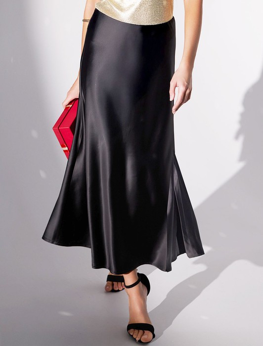 АКЦИЯ Юбка миди с разрезом из струящегося плотного сатина