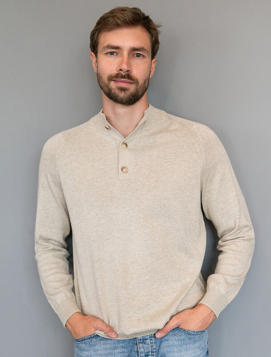 Совместные покупки Тюмень Мужская одежда Джемперы, свитеры — Акция Vilatte Джемпер тонкой вязки с застежкой на пуговицы U39.004 св.бежевый м