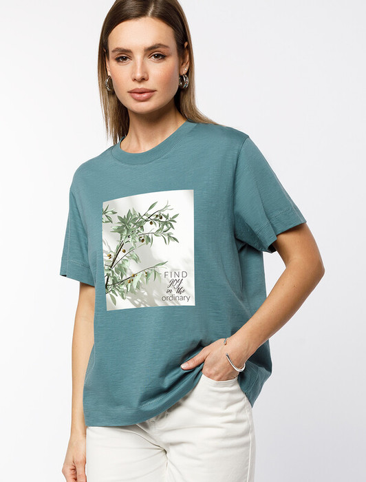 Совместные покупки Тюмень Женская одежда Футболки — Акция Vilatte Футболка из фактурного полотна с авторским принтом D49.071 полынь