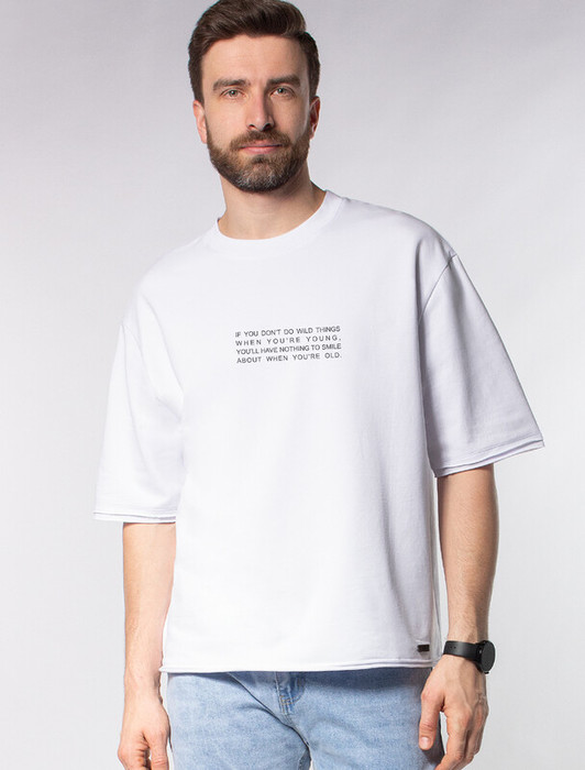 Совместные покупки Тюмень Мужская одежда Поло — Акция Vilatte Футболка с открытыми срезами из тонкого футера с принтом U49.011