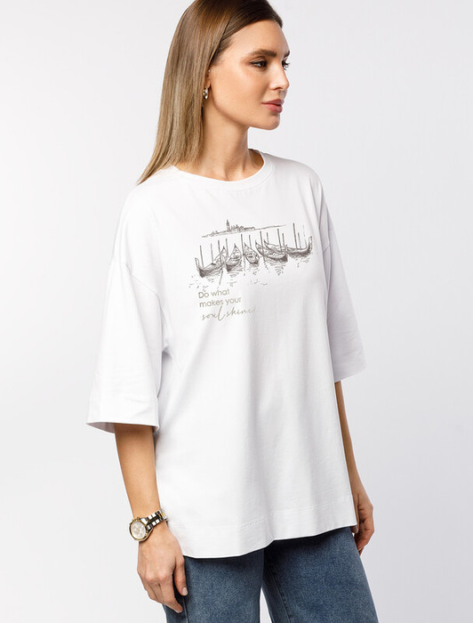 Совместные покупки Тюмень Женская одежда Футболки — Акция Vilatte Футболка свободного кроя с авторским принтом D49.082 белый_soul s
