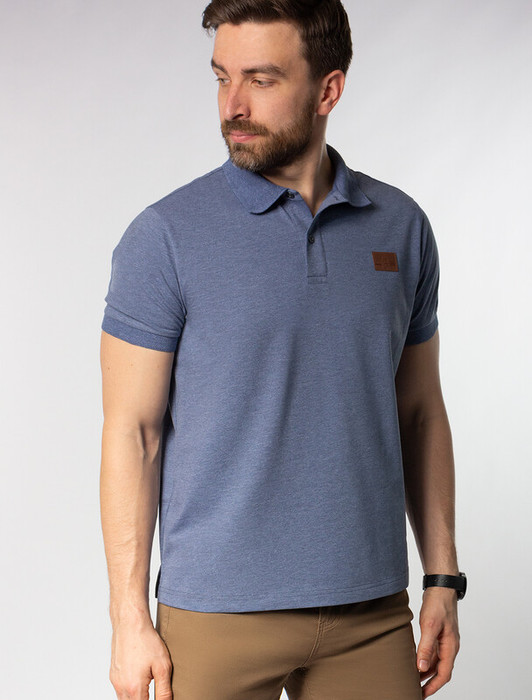 Поло выполнено из трикотажа пике с эффектом меланж. Модель с отложным фактурным воротником дополнена нашивкой из эко-кожи c надписью Аутентичный клуб VILATTE. Наличие эластана в составе изделия способствует формоустойчивости и меньшей сминаемости. На рукаве металлический логотип бренда.