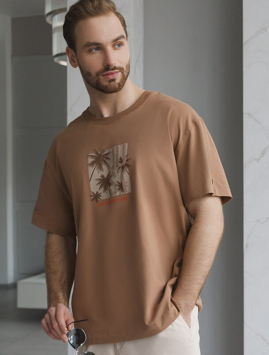 Совместные покупки Тюмень Мужская одежда Футболки — Акция Vilatte Свободная футболка с авторским принтом U49.048 коричневый_just