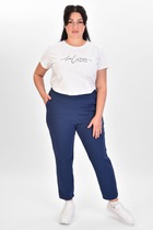 Акция Vilatte Укороченные брюки из эластичного хлопка с контрастным кантом D44.