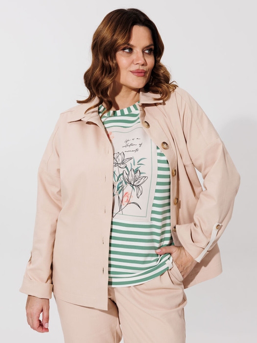 Стильный жакет-куртка, в стиле спорт-шик из хлопковой ткани. Жакет полуприлегающего силуэта, длиной до линии бедер, со спушенной линией плеча. Детали переда с кокеткой, с нагрудной вытачкой, с центральной застежкой на петли пуговицы. На боковых частях переда расположены боковые карманы. Спинка с кокеткой, средним швом. Рукава втачные с декоративными патами, придавая образу изюминку. Отличный вариант для прогулок с друзьями, выхода в свет, путешествий.