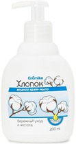 Жидкое крем-мыло «Хлопок» обладает нежной консистенцией и легким нейтральным ароматом, очищает и питает кожу рук.